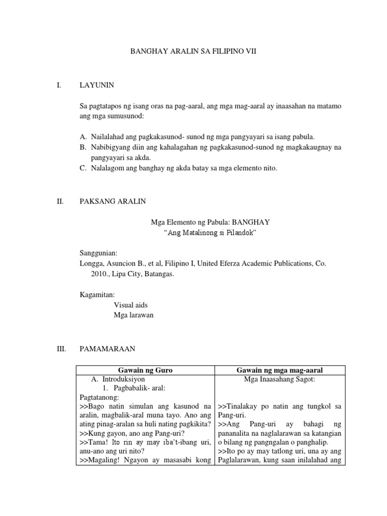 Banghay Aralin Sa Filipino 6 Pdf