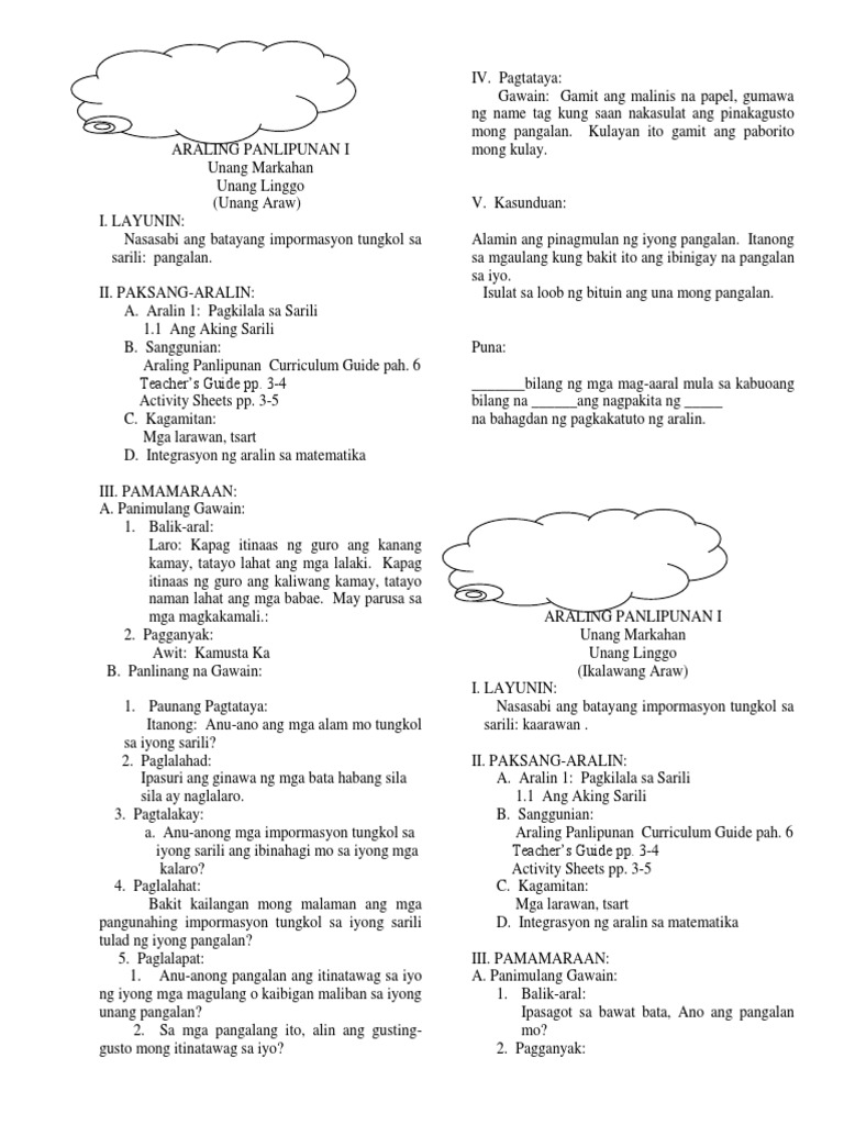 Grade 1 Lesson Plan 1q Panlipunan Pdf