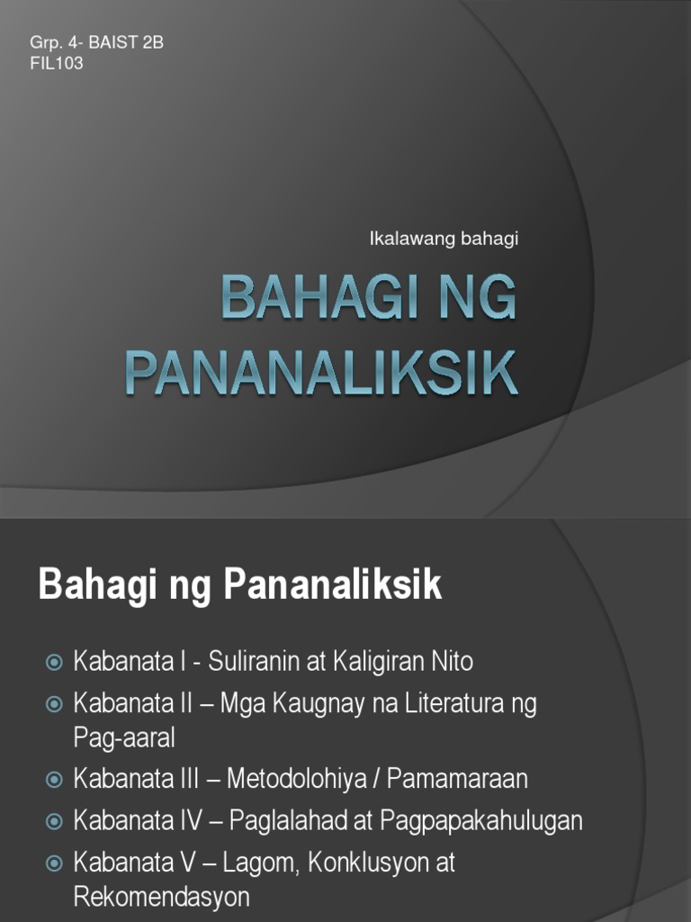 Ano Ang Mga Bahagi Ng Pananaliksik. KABANATA I Suliranin at Kaligiran Rasyunal Dito malalaman ang sagot sa tanong na Ano at. Maging sulusyon sa suliranin 2.